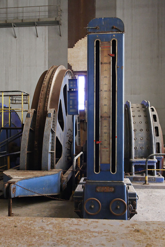24/03/2010 | Mine Théodore : indicateur de profondeur et poulie Koepe de la machine d'extraction du puits Théodore