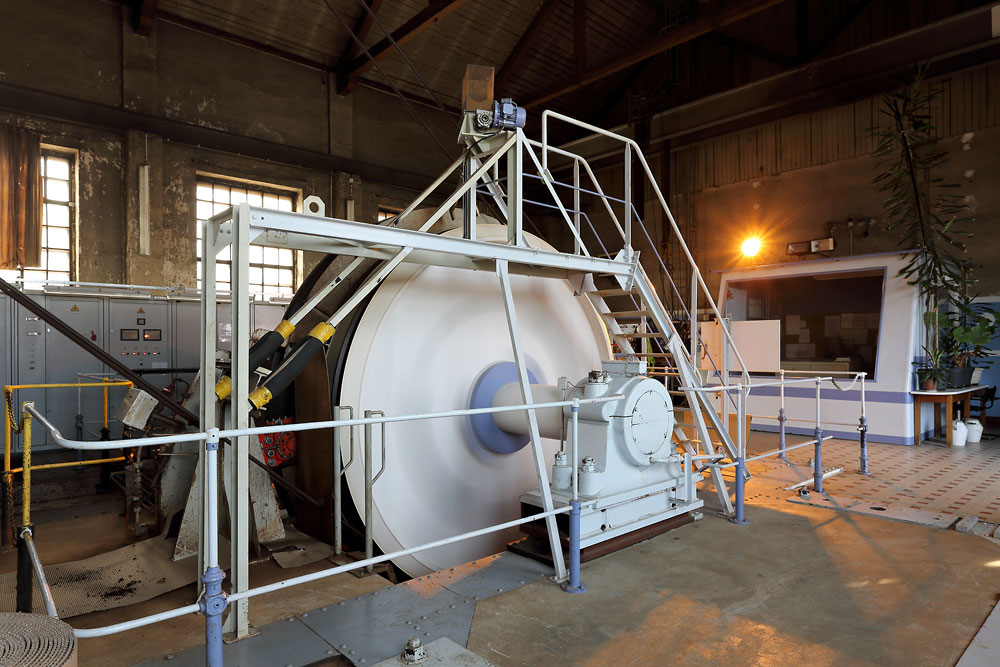 17/03/2017 | Mine Joseph-Else : machine d'extraction (poulie Koepe bicâble) du puits Joseph - à droite la cabine du machiniste