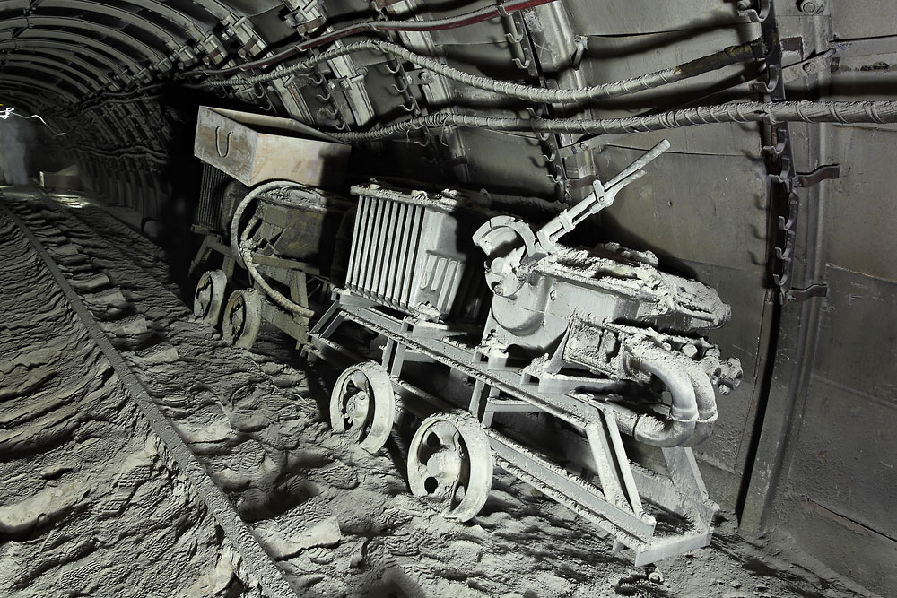 Transformateur monté sur un châssis dans une ancienne galerie de roulage vers le puits Else