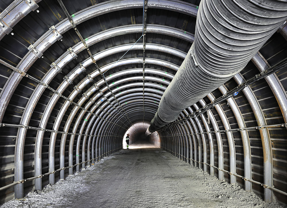 Galerie cintrée équipée d'un canar d'aérage (galerie exutoire)