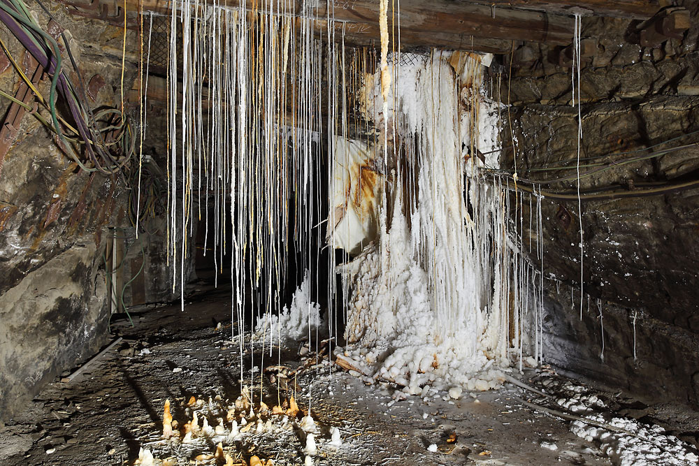Concrétions de sel vers la recette fond du puits Amélie 2