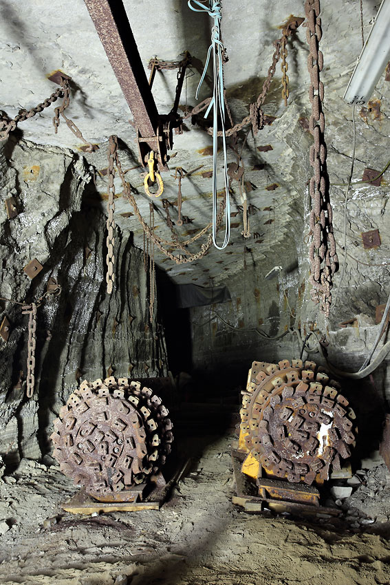 Têtes d'abattage de mineurs continus Paurat dans un atelier vers la recette fond du puits Amélie 2