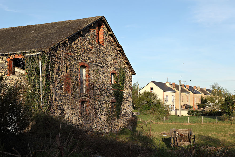 07/04/2011 | Ancien bâtiment industriel sur le site des ardoisières de Bel-Air à Combrée ; au fond la cité ouvrière
