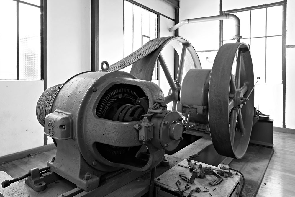06/04/2011 | Compresseur actionné par un moteur électrique dans la salle des machines du puits Longchamps 3 - Renazé