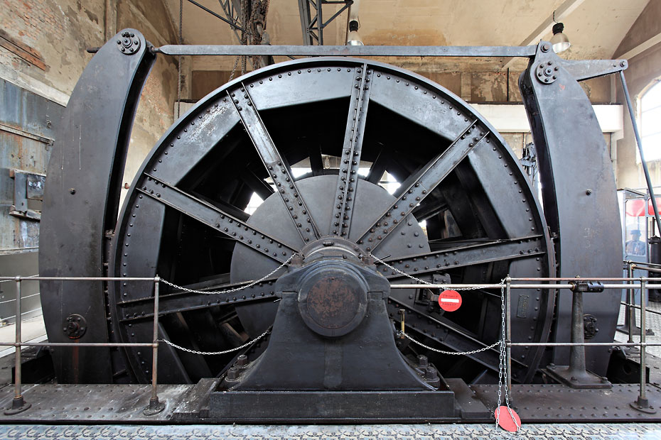 04/03/2011 | Tambour de la machine d'extraction, on voit bien les étriers des freins - Puits Saint Louis à Messeix