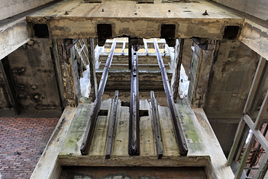21/03/2013 | Rails de guidage des cages dans le faux-carré du chevalement du puits Central - Noyant d'Allier