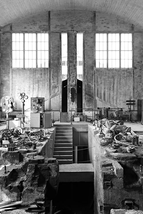 21/03/2013 | Emplacement de la machine d'extraction à vapeur du puits Central ; on voit bien les passages pour les câbles - Noyant d'Allier