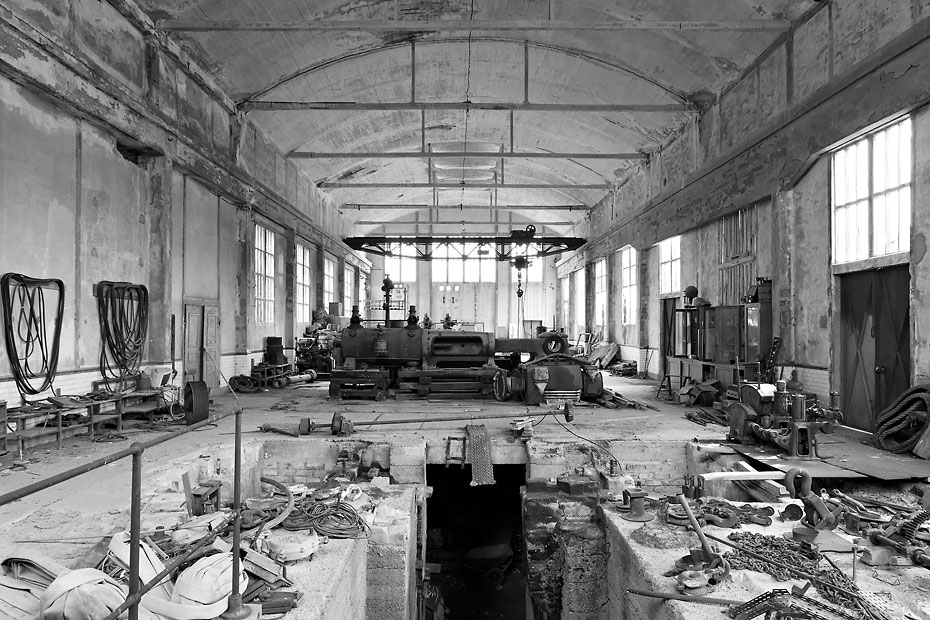 21/03/2013 | Salle des machines du puits Central ; la machine d'extraction se trouvait au niveau de la fosse au premier plan - Noyant d'Allier