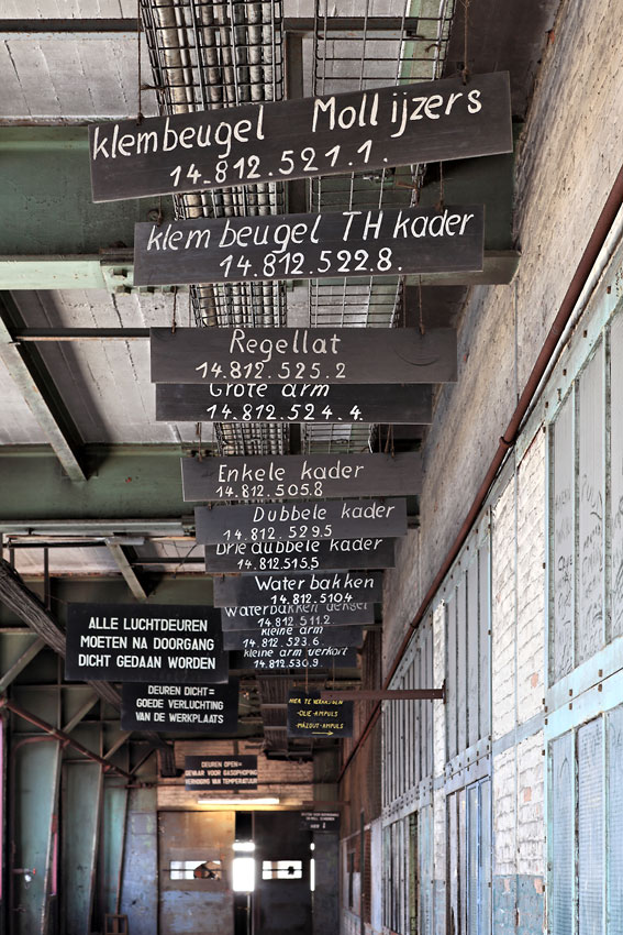 23/03/2011 | Dans le couloir vers le puits, panneaux indiquant les guichets pour récupérer les différents outils - Beringen
