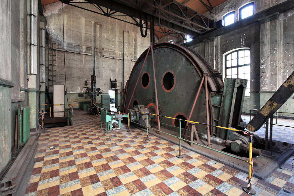 23/03/2011 | Poulie Koepe de la machine d'extraction Sud du puits n°2 ; à droite une machoire pour le freinage - Beringen