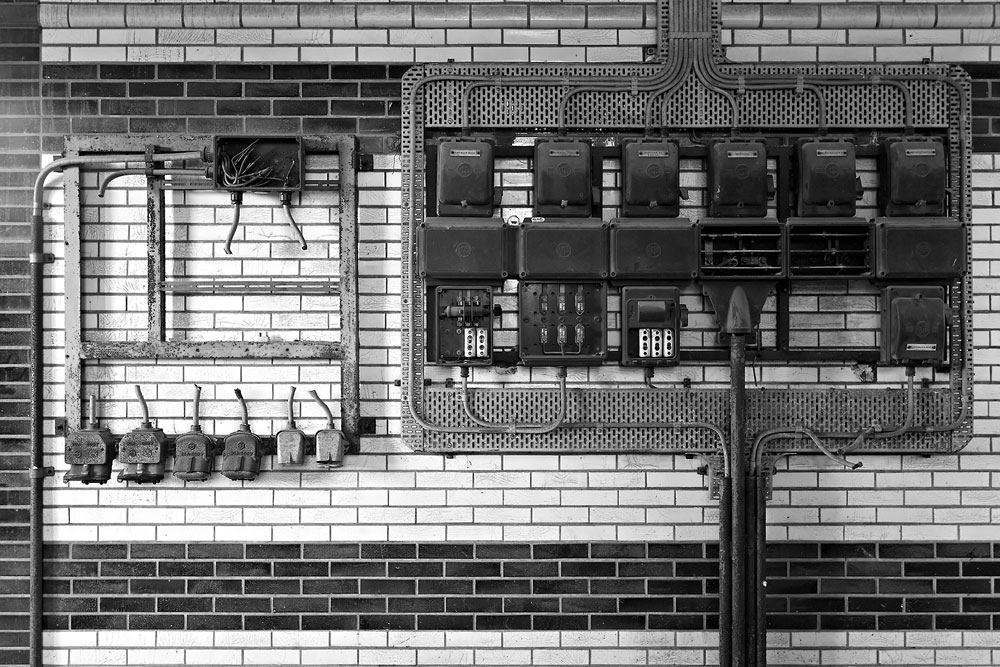 23/03/2011 | Installations électriques sur un mur de la salle des machines du puits n°2 - Charbonnage de Waterschei