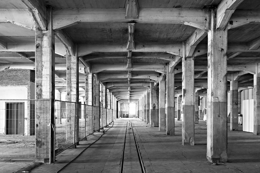 23/03/2011 | Le rez-de-chaussé du bâtiment principal, construit tout en béton - Charbonnage de Winterslag