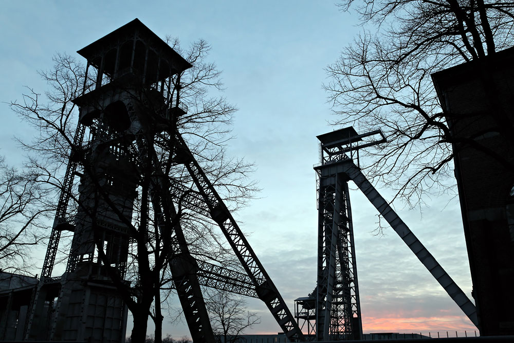 22/02/2011 | Chevalements des puits n°2 et 1 après le coucher du soleil - Charbonnage de Winterslag