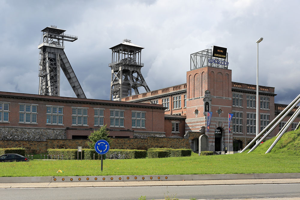 19/08/2017 | Lampisterie et vestiaires, au fond les chevalements des puits n°1 et 2 - Charbonnage de Winterslag