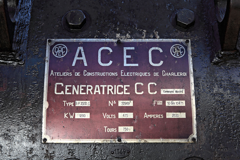 23/03/2011 | Plaque constructeur sur une génératrice à courant continu d'un groupe convertisseur du puits n°2 - Charbonnage de Winterslag