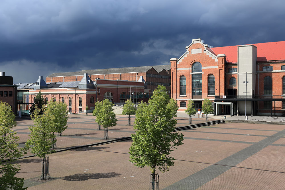 19/08/2017 | De gauche à droite : bains-douches, magasin central et bâtiments des machines des puits n°1 et 2 - Charbonnage de Zolder