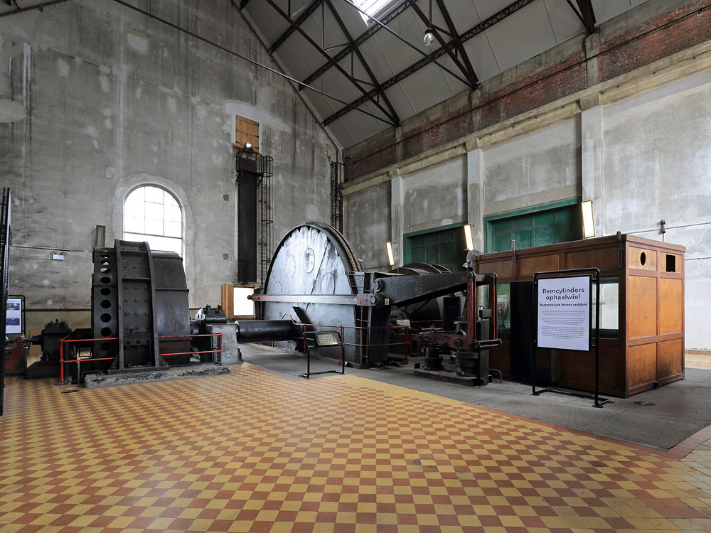19/08/2017 | Machine d'extraction 2 du puits n°2 (poulie Koepe) ; à droite la cabine en bois du machiniste - Charbonnage de Zolder