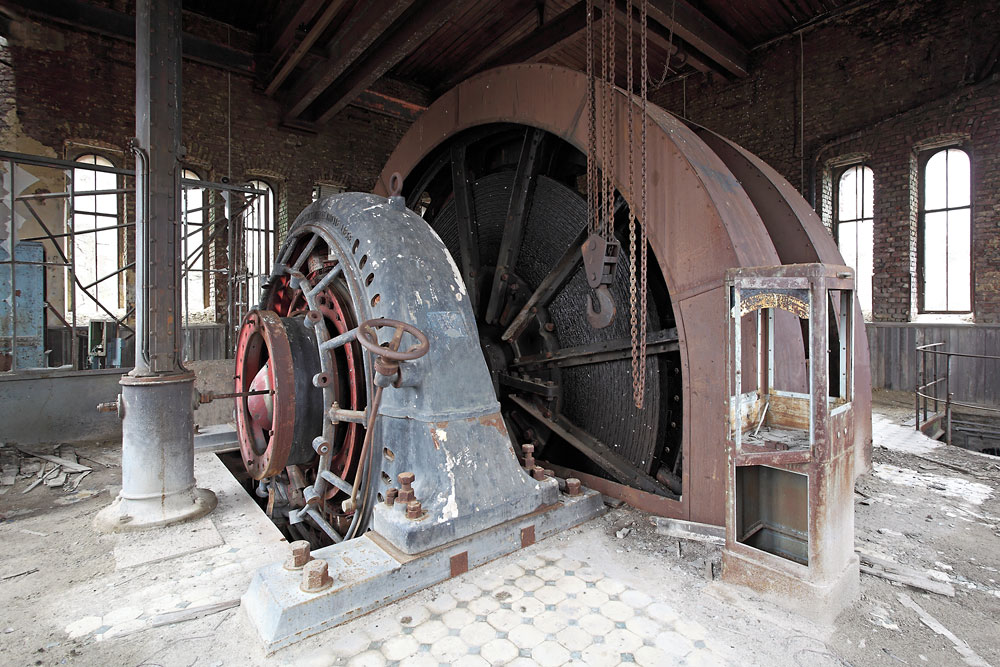 21/02/2011 | Machine d'extraction en tête du puits n°1 équipée de 2 bobines pour câbles plats - Charbonnage du Hasard à Cheratte