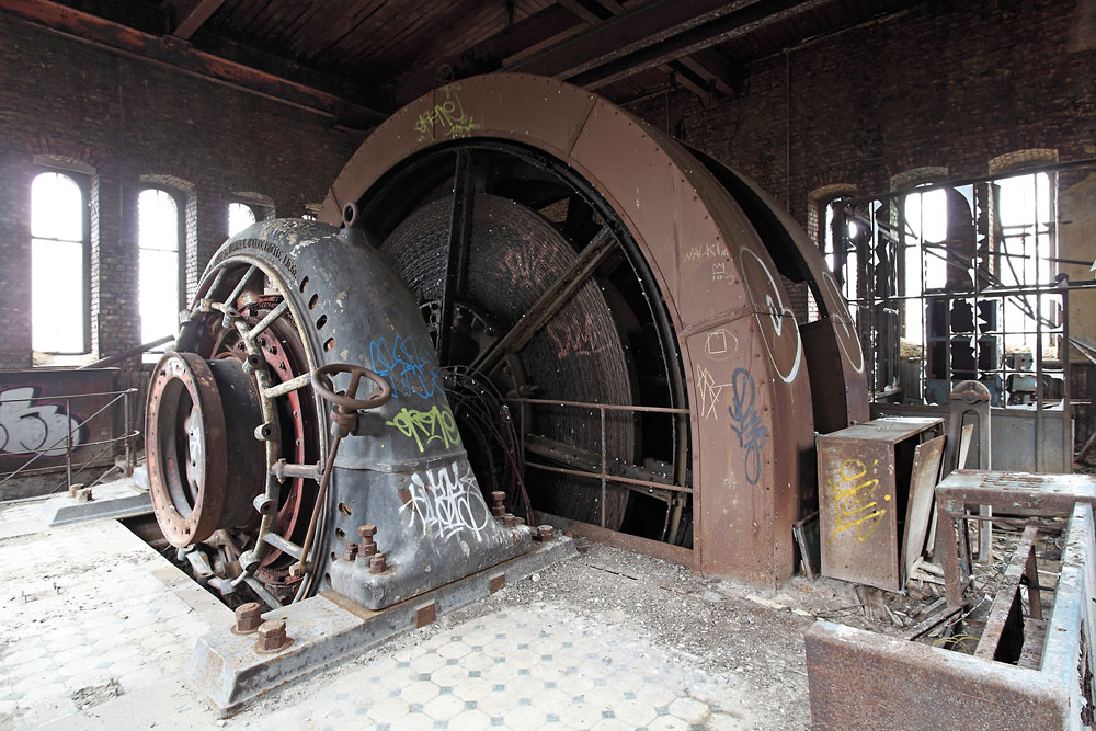 21/02/2011 | Machine d'extraction en tête du puits n°1 équipée de 2 bobines pour câbles plats - Charbonnage du Hasard à Cheratte