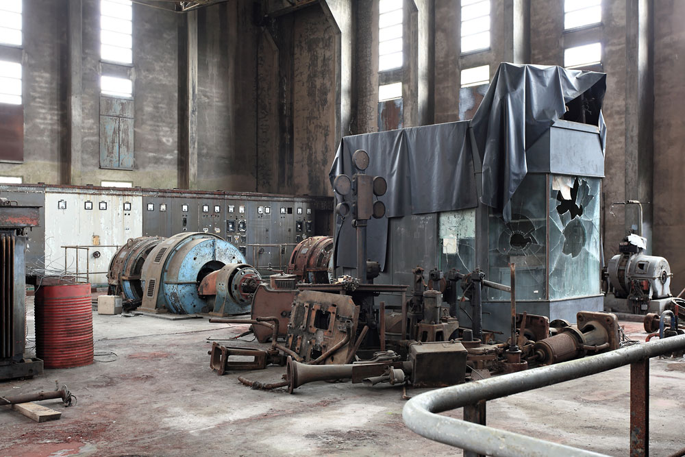 27/04/2011 | Salle de la machine d'extraction du puits 1 : cabine du machiniste, au fond les groupes convertisseurs