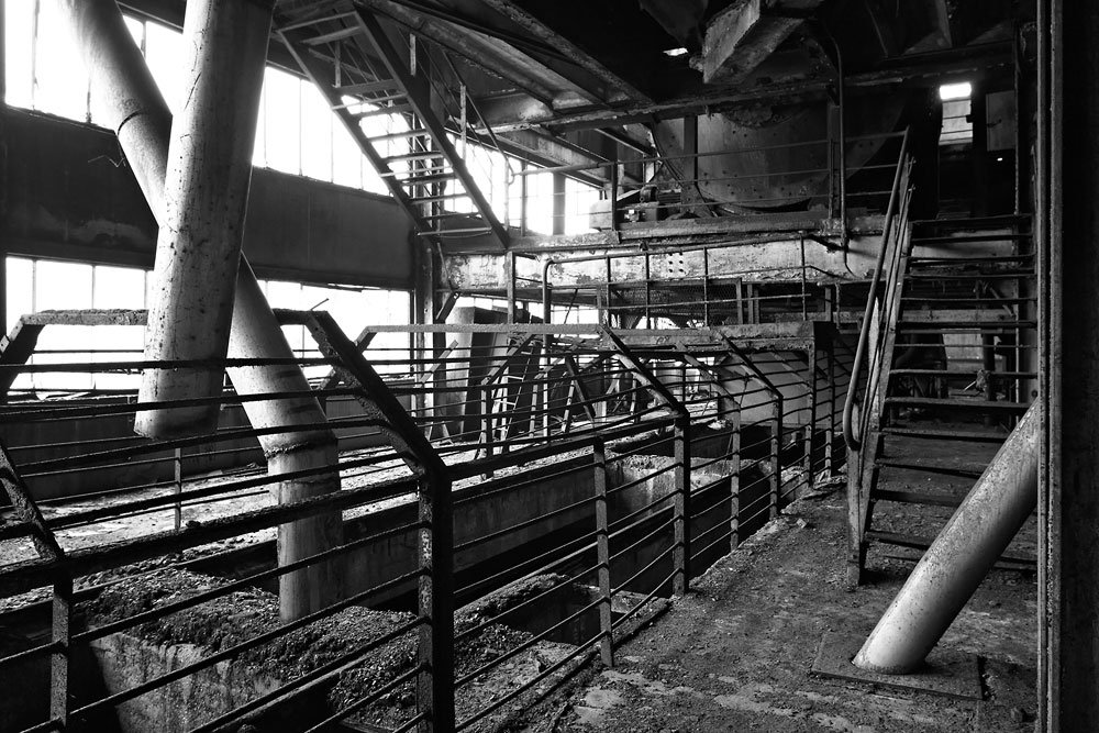 28/04/2011 | Lavoir 3 : sous les lignes de traitement du charbon ; on peut apercevoir en haut au fond un tambour laveur Wemco