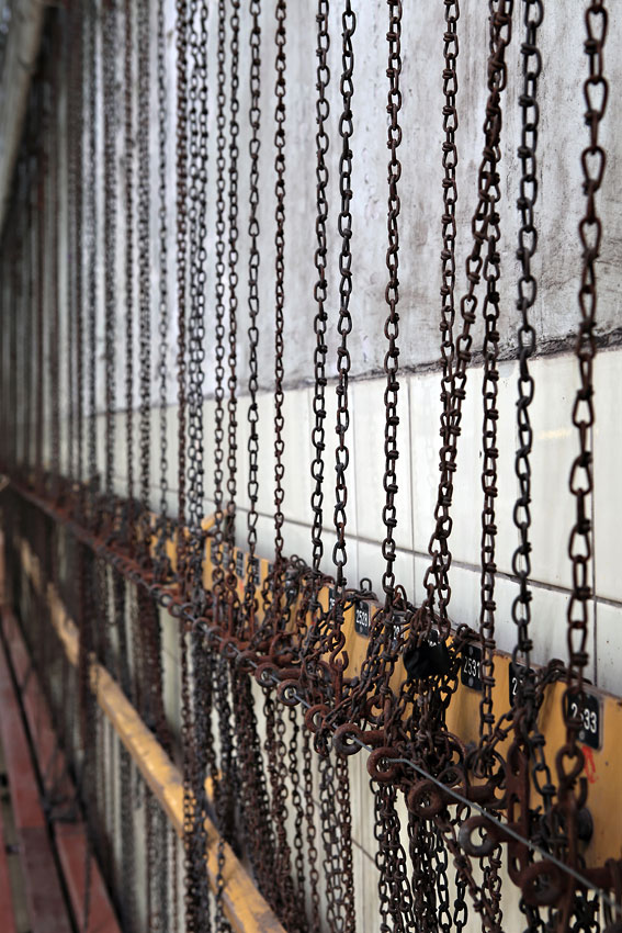 07/12/2010 | Un vestiaire ou «salle des pendus» : chaînettes au bout desquelles les vêtements des mineurs étaient suspendus