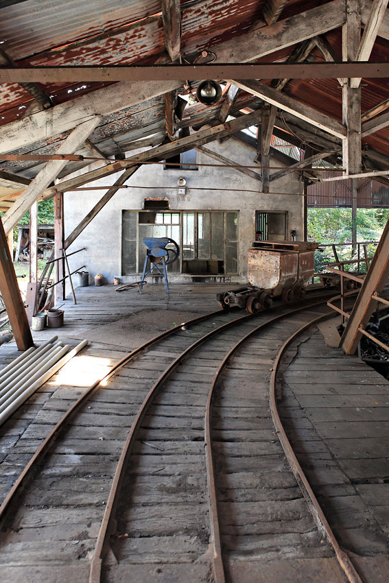 17/08/2010 | Rails menant les berlines vers les culbuteurs, au fond la salle abritant le treuil d'extraction