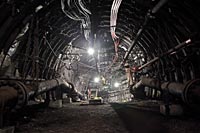 Les galeries sont intégralement renforcées par des cintres métalliques resserrés, caractéristiques des mines de charbon. Un plan incliné permet de rejoindre le puits n°1, juste au dessus du noyage et des pompes. Un système de monorail est utilisé pour le transport du matériel le long de ce plan incliné.