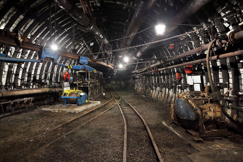 30/05/2013 | Galerie de liaison entre les puits n°1 et n°3 ; à droite un monorail pour le transport du matériel