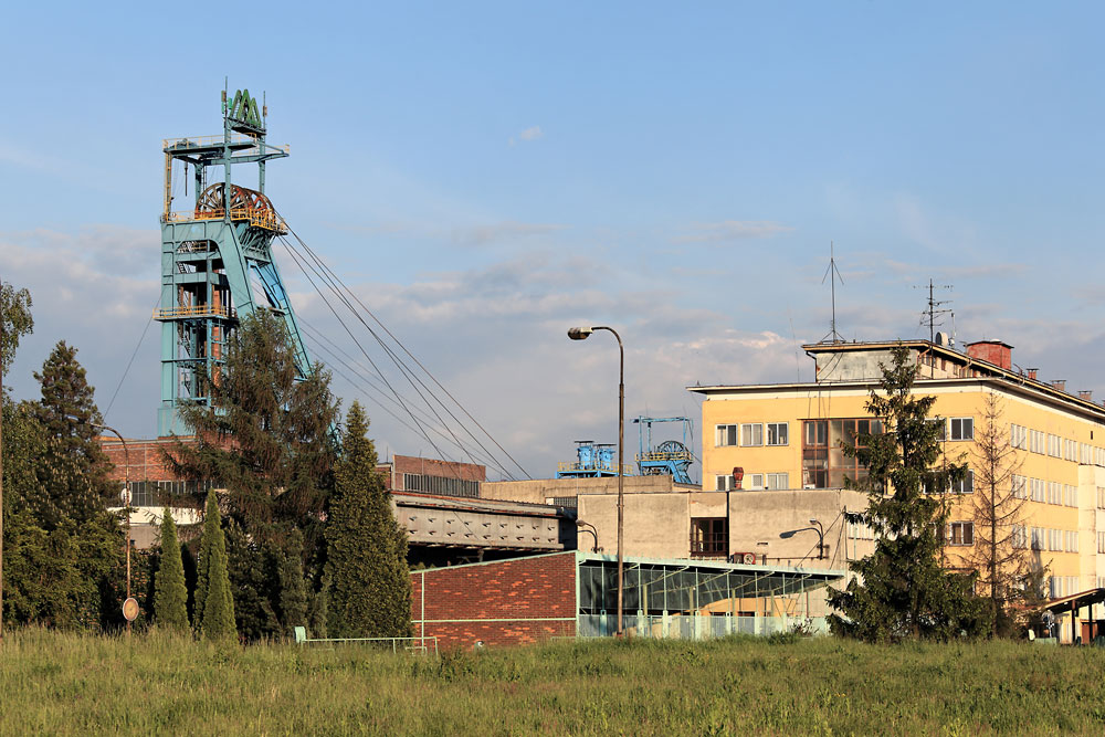 26/05/2013 | Mine Darkov, siège 9. květen : chevalement du puits Su-Sto I ; on aperçoit au fond le chevalement du puits Su-Sto III / Stonava