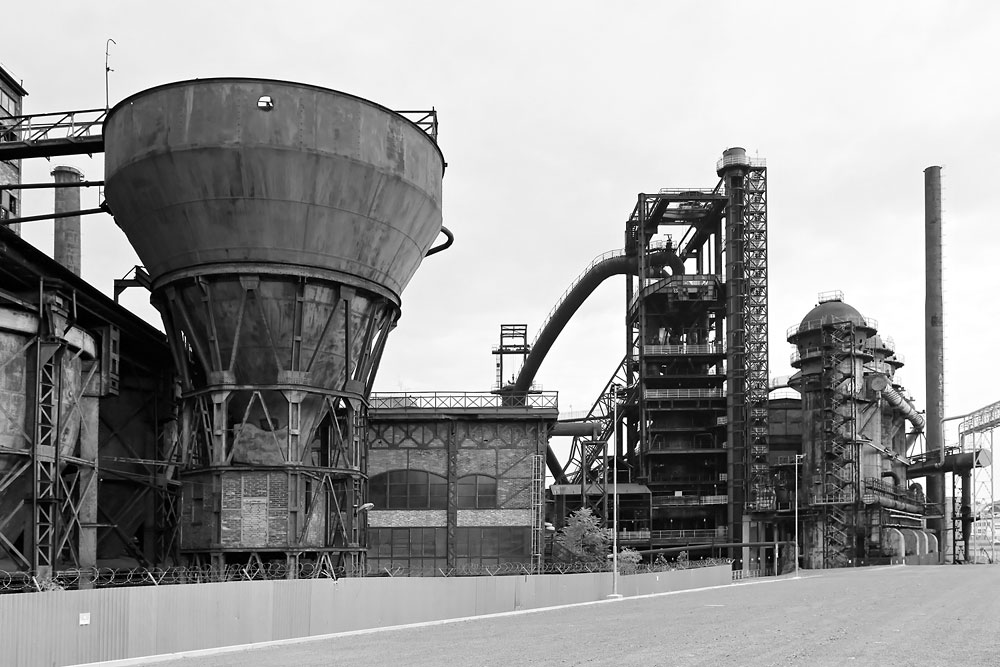 31/08/2013 | Un décanteur du lavoir de la mine Hlubina ; &adroite; un ancien haut-fourneau / Ostrava-Vítkovice