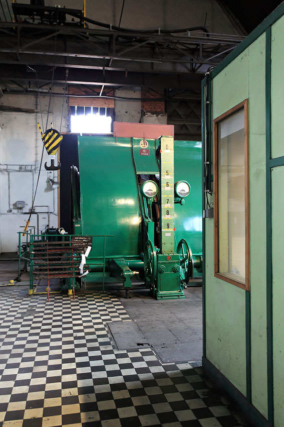 27/08/2013 | Tambour et indicateur de profondeur de la machine d'extraction du puits n°5/1 ; à droite la cabine du machiniste