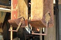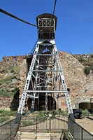 Le puits San Joaquín est modernisé en 1975 par l'installation d'une grande tour d'extraction à poulie Koepe, comprenant une cage pour le transport du personnel et du matériel et un skip de grande capacité pour l'extraction du minerai.