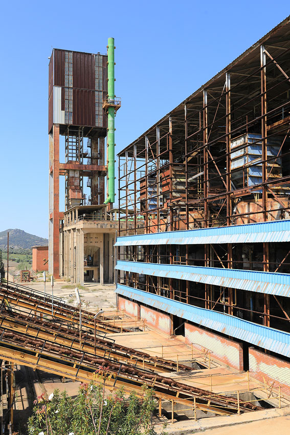 24/03/2019 | L'usine métallurgique : fours Pacific-Herreshoff et convoyeurs à scories ; au fond la tour d'extraction du puits San Joaquín