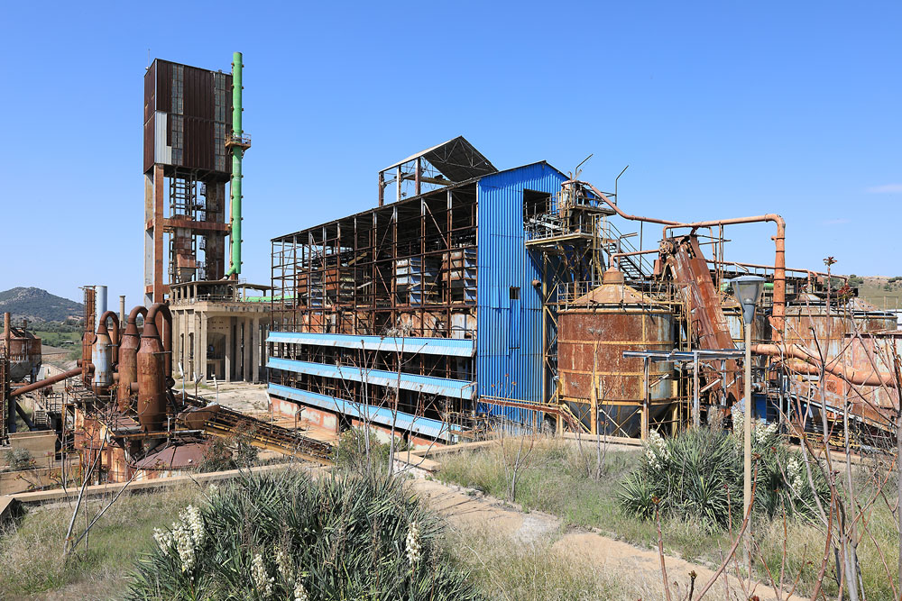 24/03/2019 | Vue générale sur l'usine métallurgique et les 4 fours Pacific-Herreshoff ; au fond la tour d'extraction du puits San Joaquín