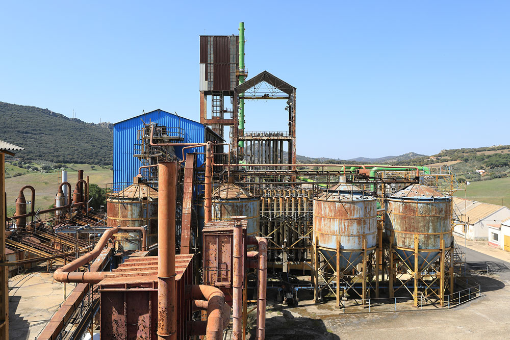 24/03/2019 | Vue générale sur l'usine métallurgique, au 1er plan l'unité de préparation du minerai ; au fond tour d'extr. du puits San Joaquín
