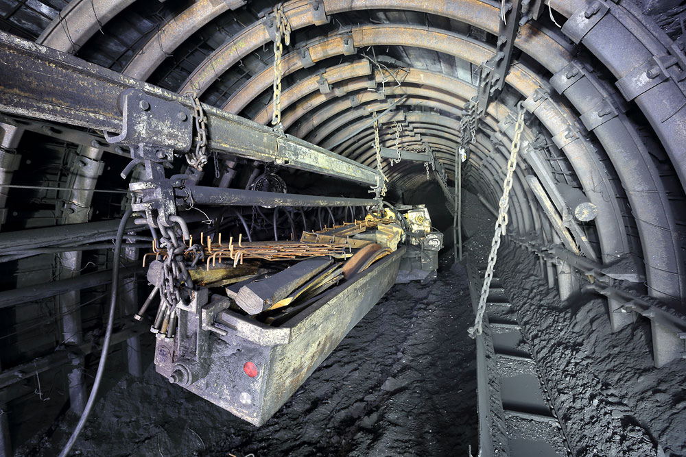 29/06/2016 | En voie de base : le matériel est transporté sur un monorail ; à droite le convoyeur blindé pour l'évacuation du charbon