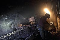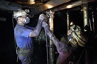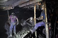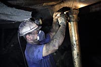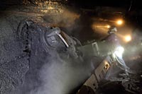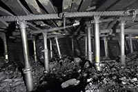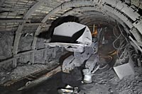Lors de ma visite en juillet 2016, l'activité était déjà très réduite, seule une vingtaine de mineurs travaillait encore au fond. Le charbon est extrait par une haveuse à double tambour dans une longue taille équipée d'un soutènement marchant. Le matériel de la taille provient de la société Mackina Westfalia.