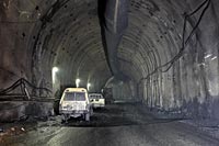 Depuis les bureaux, en poursuivant la piste goudronnée vers l'ouest, on arrive au carreau de la nouvelle mine. On y trouve de nombreux engins diesel (bulldozer, chargeuse-transporteuse, jumbo de foration...), des ateliers de mécanique, une petite lampisterie ainsi que l'entrée de la descenderie routière. Au nord de ce carreau s'ouvre une petite galerie équipée d'une voie de 60cm encore utilisée pour le transport des explosifs.