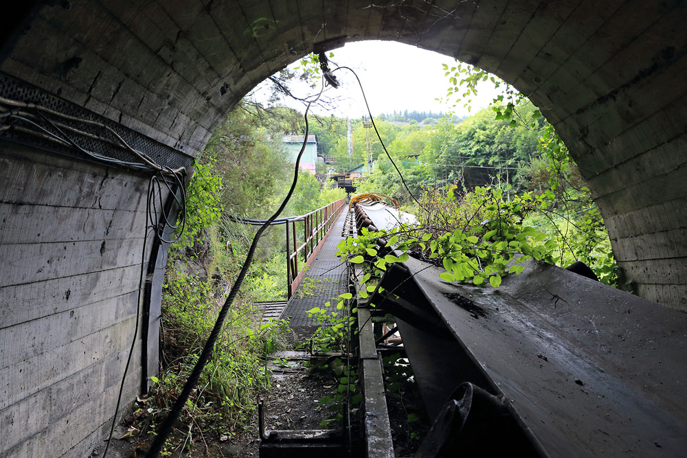 01/07/2016 | La vieille mine : entrée du plan incliné n°2 (destiné à l'extraction du charbon par une bande transporteuse) ; au fond le lavoir