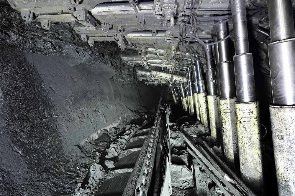 01/07/2016 | Longue taille avec soutènement marchant ; on peut voir au centre la chaîne de halage de la haveuse et le convoyeur blindé