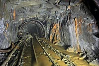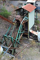 La mine comportait plusieurs étages reliés entre eux par des plans inclinés, équipés de treuils (pour la descente des mineurs et du matériel) et de convoyeurs à bande pour le transport du charbon. Nous avons rejoint le deuxième étage en empruntant successivement deux plans inclinés. A chaque niveau, le transport du matériel est assuré par des locos à accus Trariasa. Nous n'avons malheureusement pas eu la possibilité de rejoindre la taille. Le charbon était extrait à l'aide d'un rabot dans des tailles boisées.