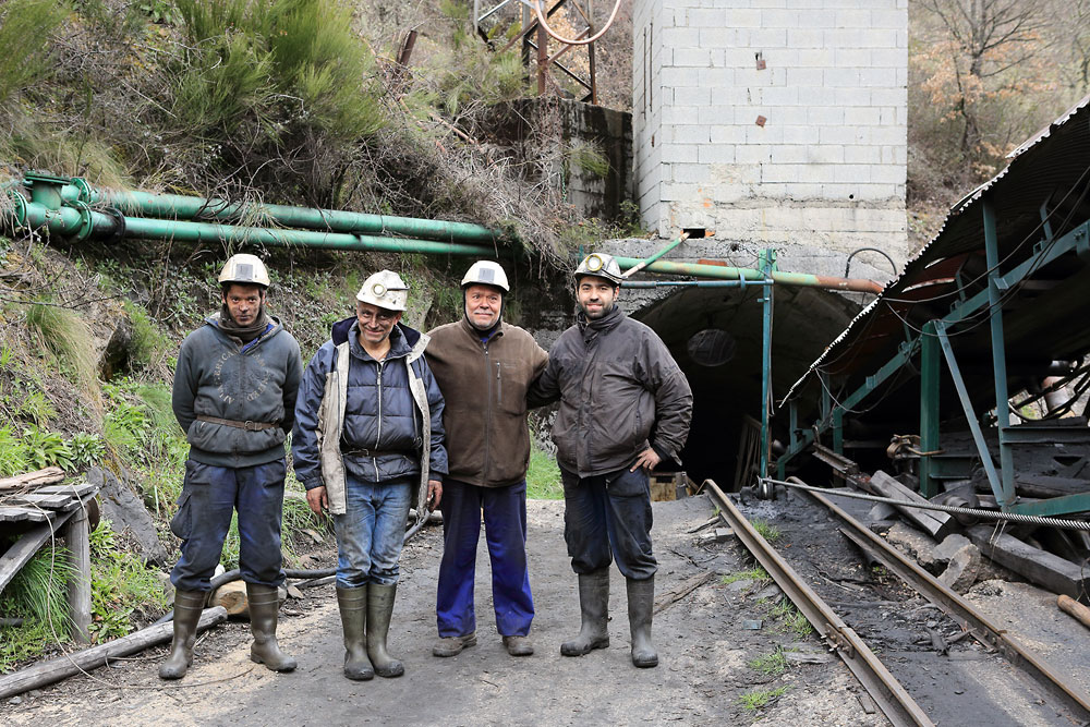 06/04/2016 | Simón (Directeur de la mine), David (ingénieur) et deux mineurs devant l'entrée du plan incliné (Pozo Casares)