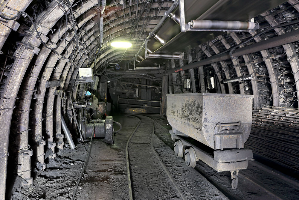 06/04/2016 | Berline vide dans la galerie menant au 3ème plan incliné ; le petit treuil à gauche est utilisé pour descendre le matériel