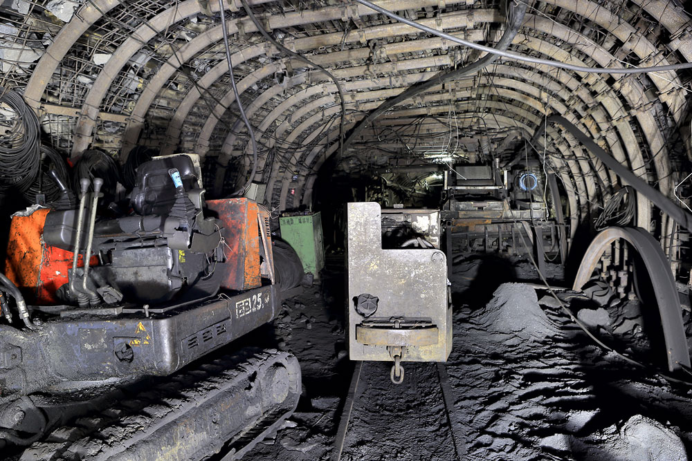 06/04/2016 | Galerie de l'étage principal encombrée de matériel (petite pelle sur chenilles, loco à accus, convoyeur à bande...)