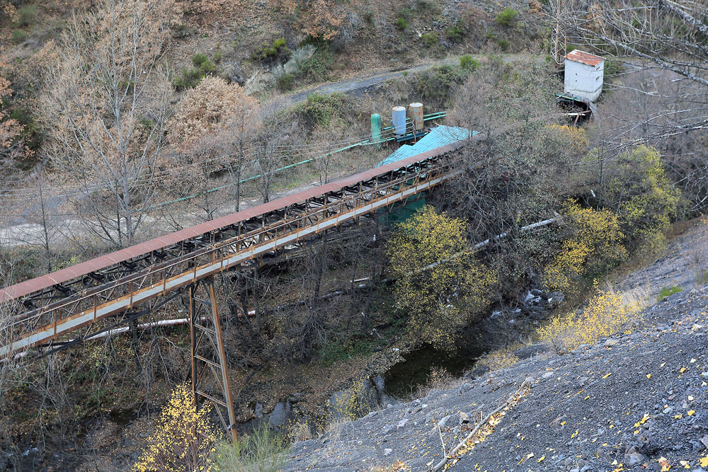 30/11/2016 | Long convoyeur à bande provenant du plan incliné (en haut à droite), après fermeture de la mine