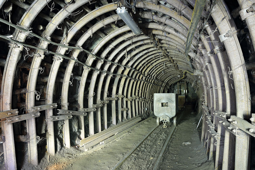 07/04/2016 | Galerie en tête d'un plan incliné entre le niveau de l'entrée et le niveau 0 ; on aperçoit au fond le treuil