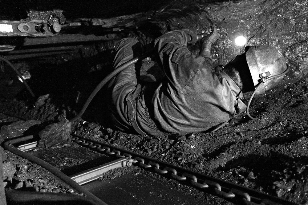 07/04/2016 | Un mineur ('picador') au front de taille abat le charbon au marteau piqueur