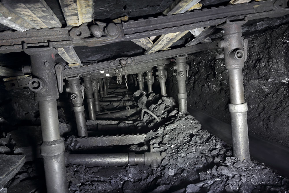 07/04/2016 | Une taille étançonnée entre le niveau 0 et le 1er étage ; à droite le front de taille, à gauche le foudroyage
