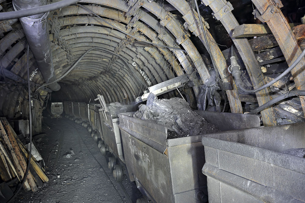 07/04/2016 | A la base de la taille (1er étage), le charbon est chargé dans des berlines à l'aide d'une goulotte